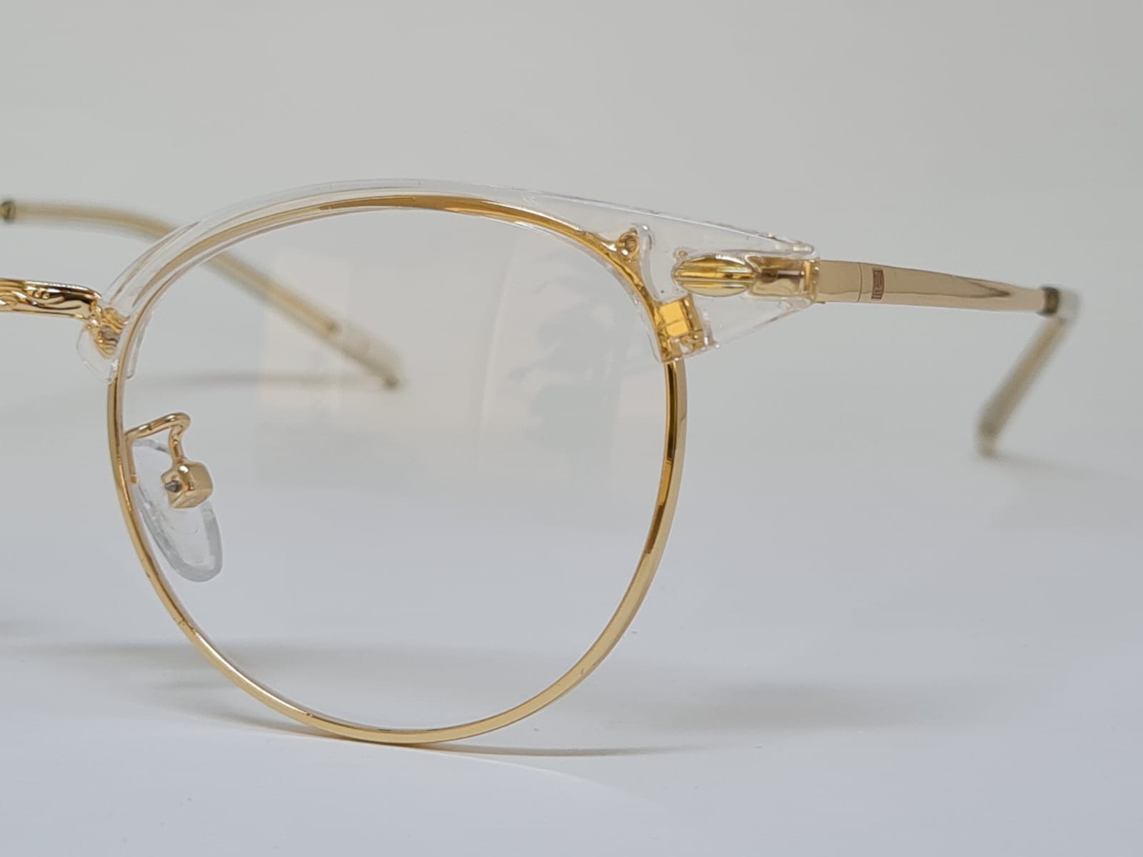 MATERIAL: armação e hastes de metal dourado e material injetado na armação e ponteiras.